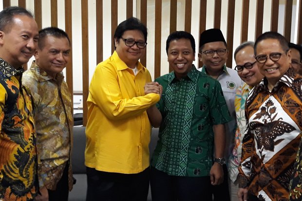 JAKARTA – Ketua Umum Partai Golkar Airlangga Hartarto menyambangi kantor Dewan Pimpinan Pusat (DPP) Partai Persatuan Pembangunan (PPP) di Jakarta, Kamis (28/6) sore.